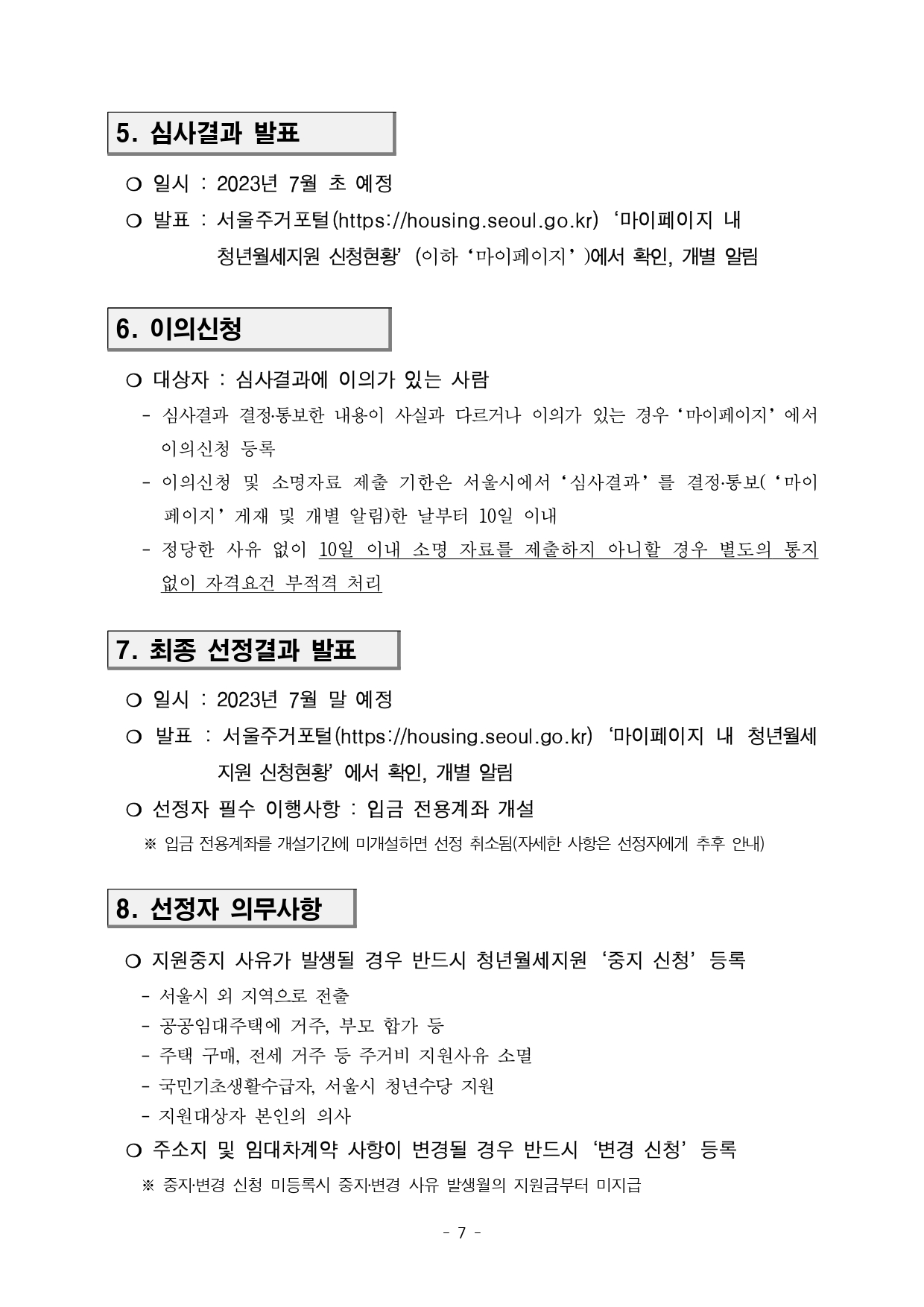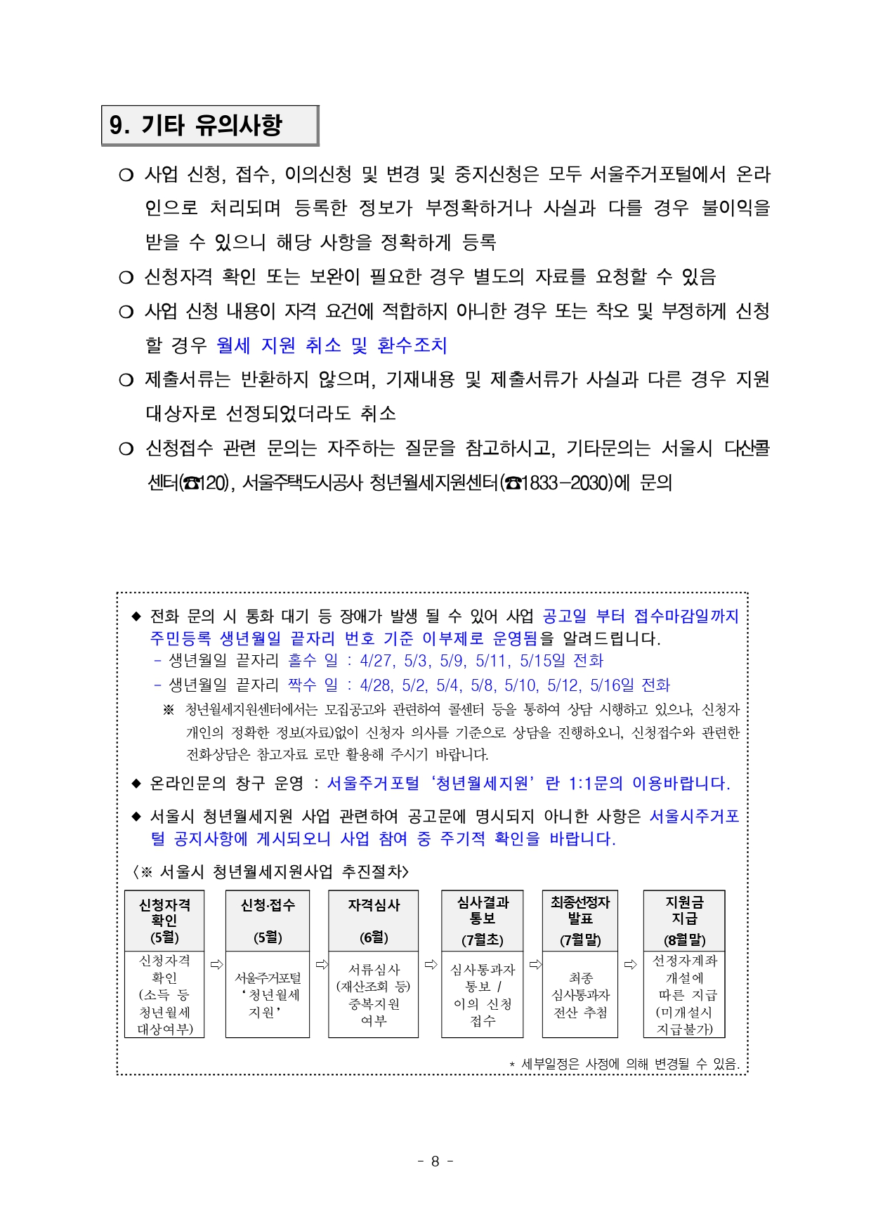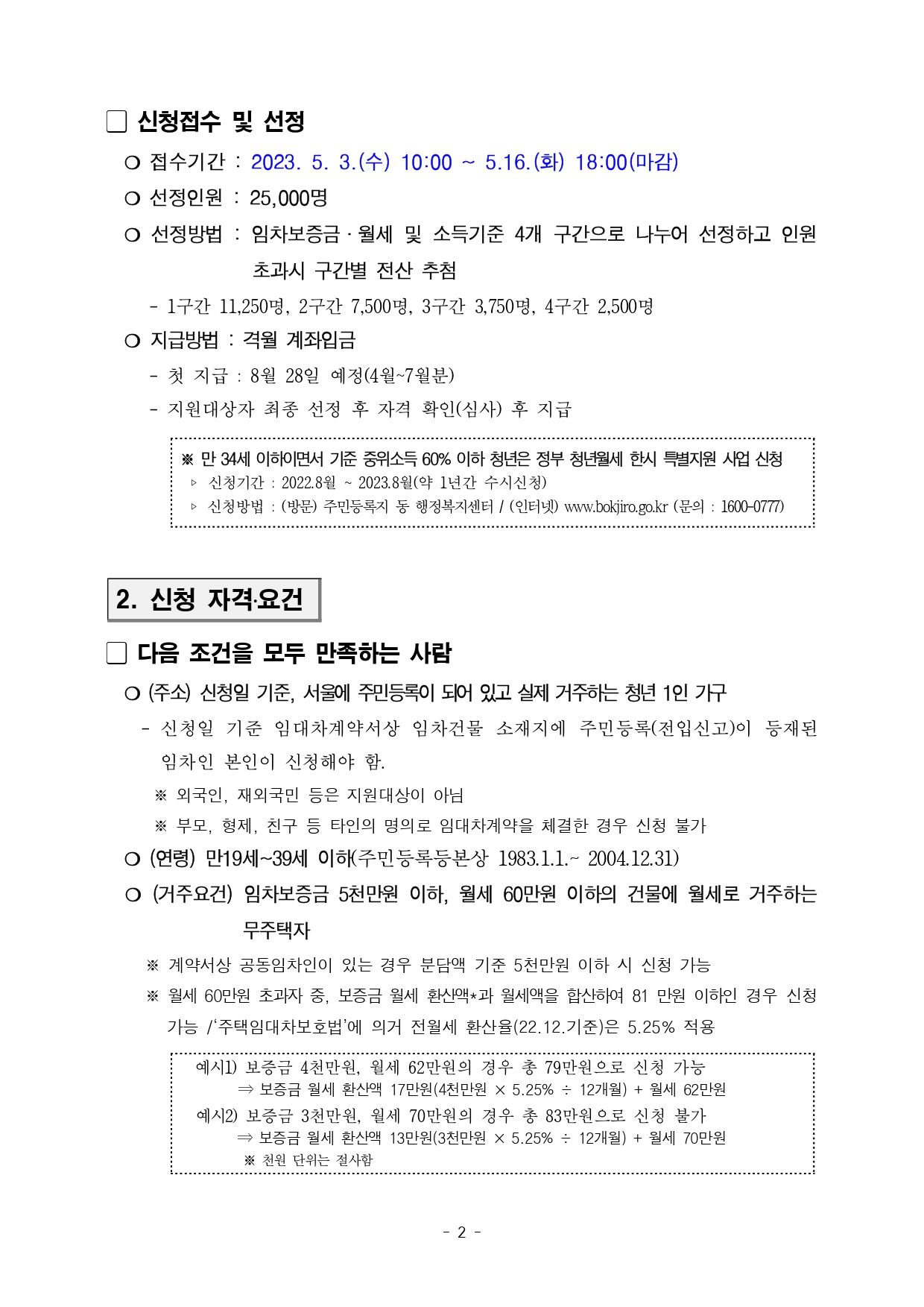 문의 : 서울주택도시공사 청년월세지원센터 1833-2030, 다산콜센터 120