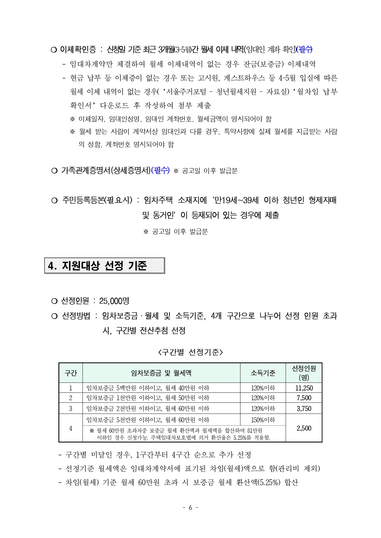 | 4 | 임차보증금 5천만원 이하이고, 월세 60만원 이하 | 150% 이하 | 2,500 |