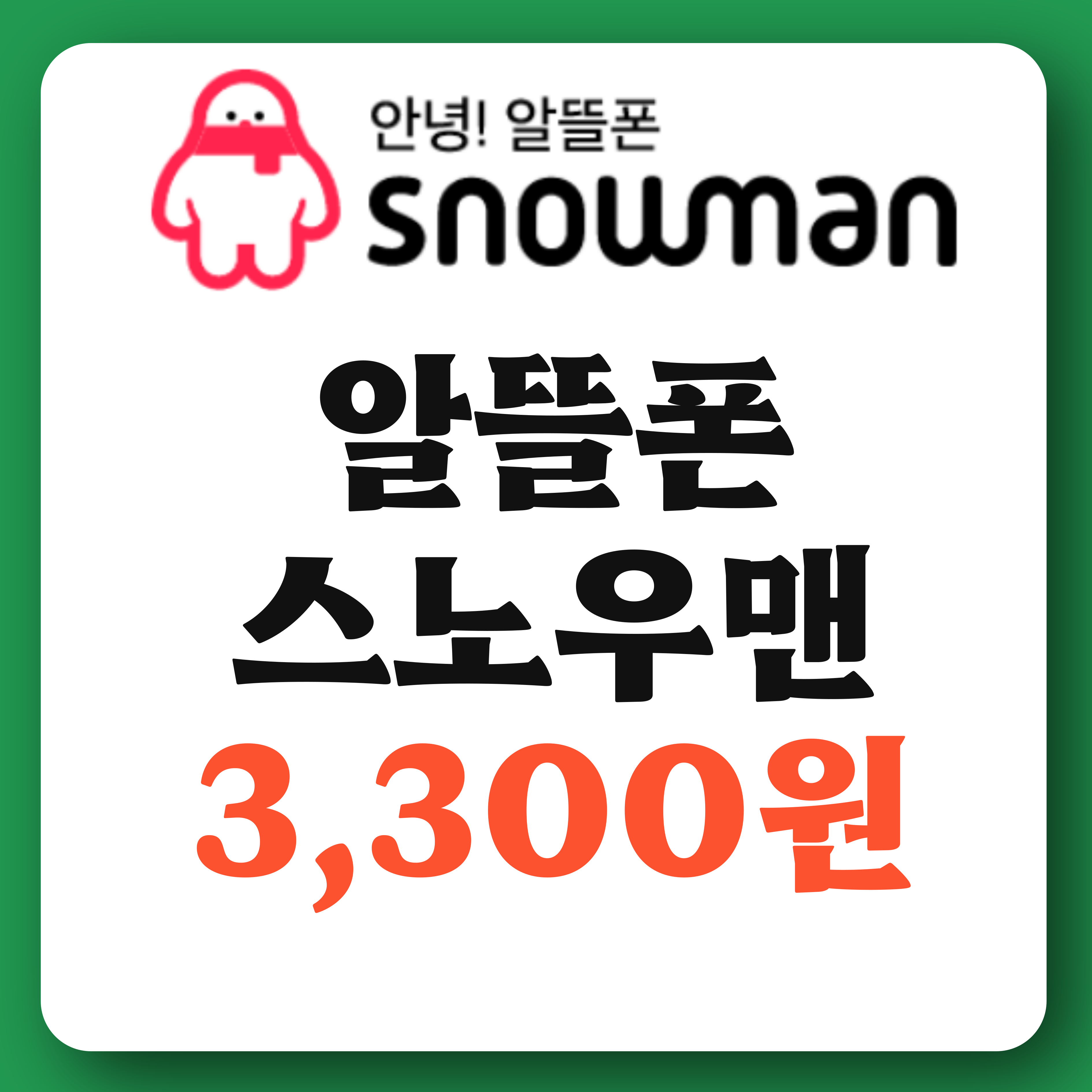 스노우맨은 선착순 1,000명이 6만 9,000원짜리 요금제를 3,300원에 가입할 수 있는 이벤트를 진행하고 있습니다.