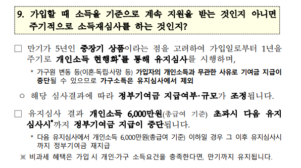 ※ 가입일 1년 기준으로 개인소득의 변동에 따라 기여금 지급여부 및 규모가 조정되니 소득 증가, 하락에 따라 계속 변동할 수 있다는 점 주의하기 바라며, 가구소득은 미반영 되니 개인소득만 잘 확인하기 바란다.