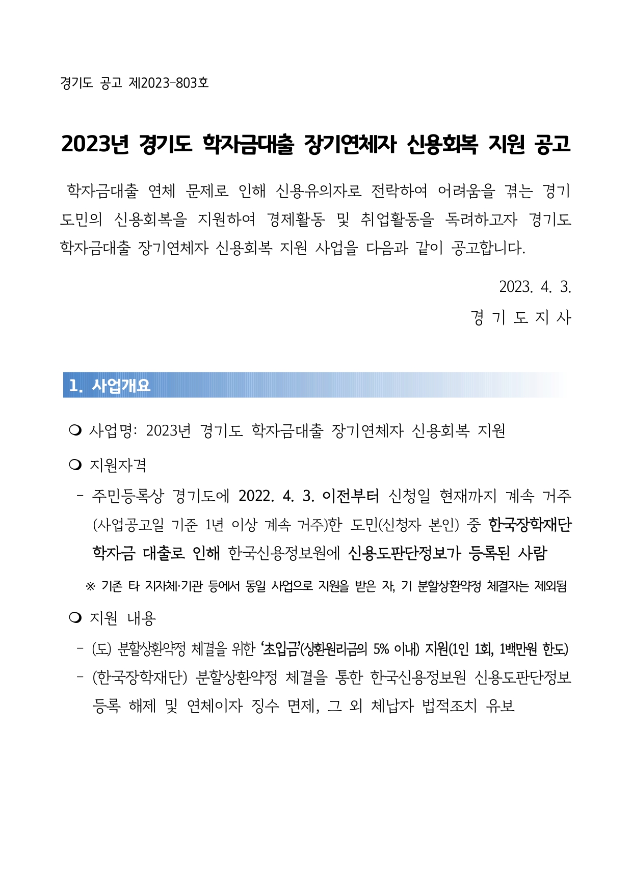 경기도 학자금대출 장기연체자 신용회복 지원이란?