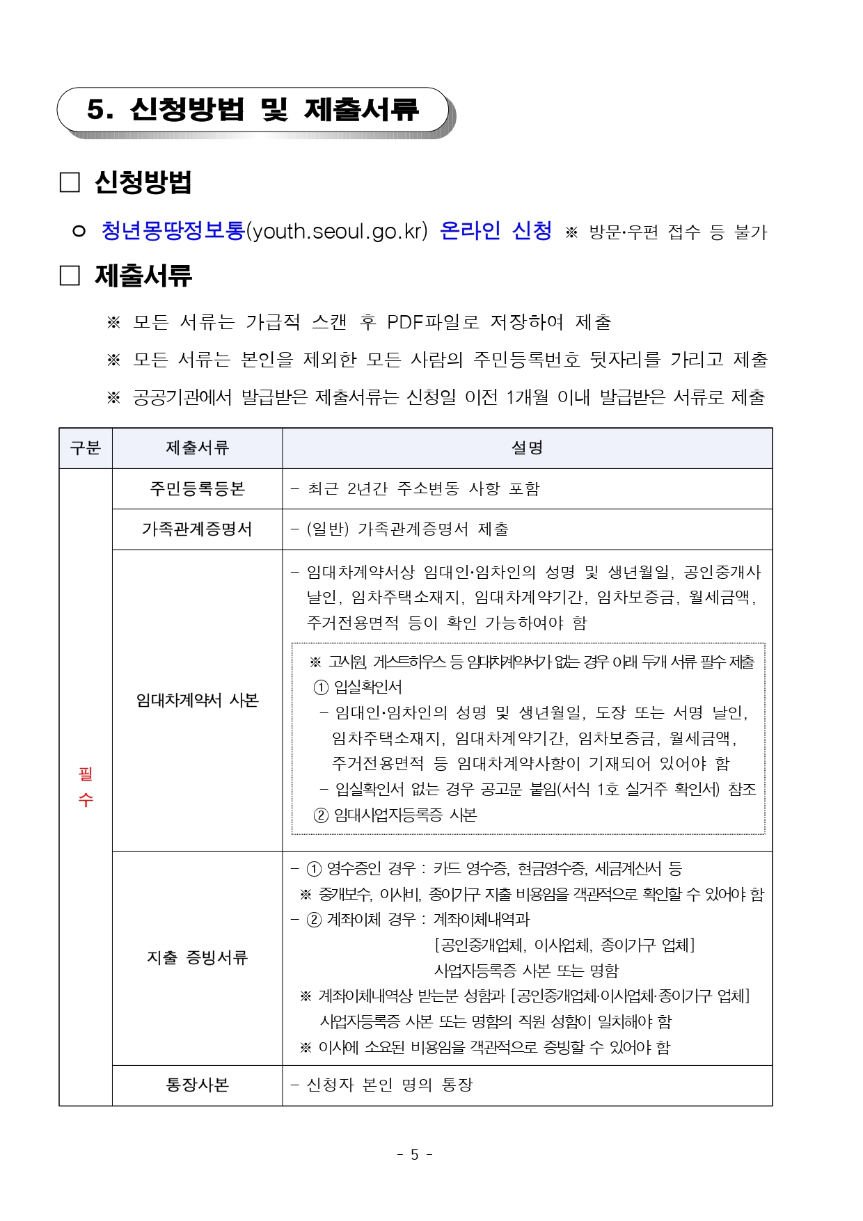 | 재산 | · 신청자 본인 무주택자 |