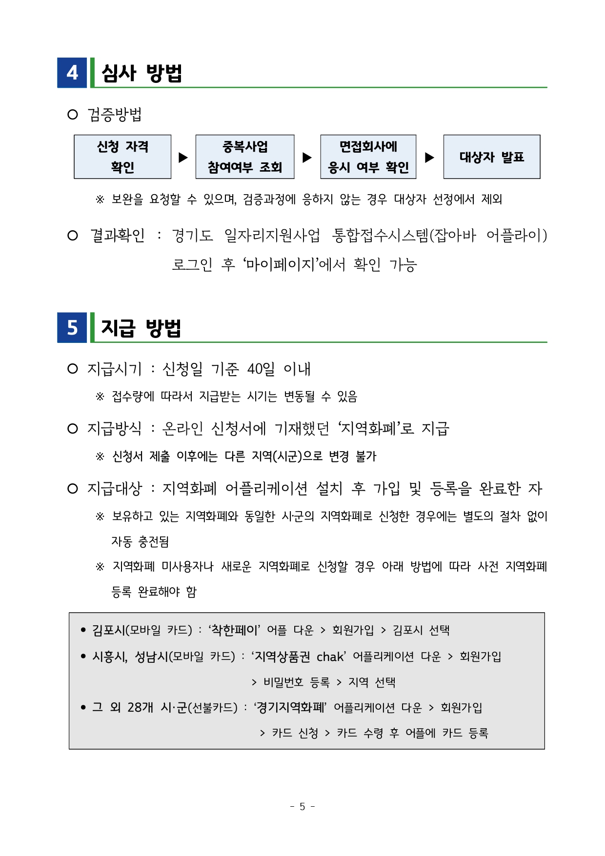- - 면접수당 지원 : 1인 최대 50만원 지역화폐 지원(면접 1회 5만원, 최대 10회)