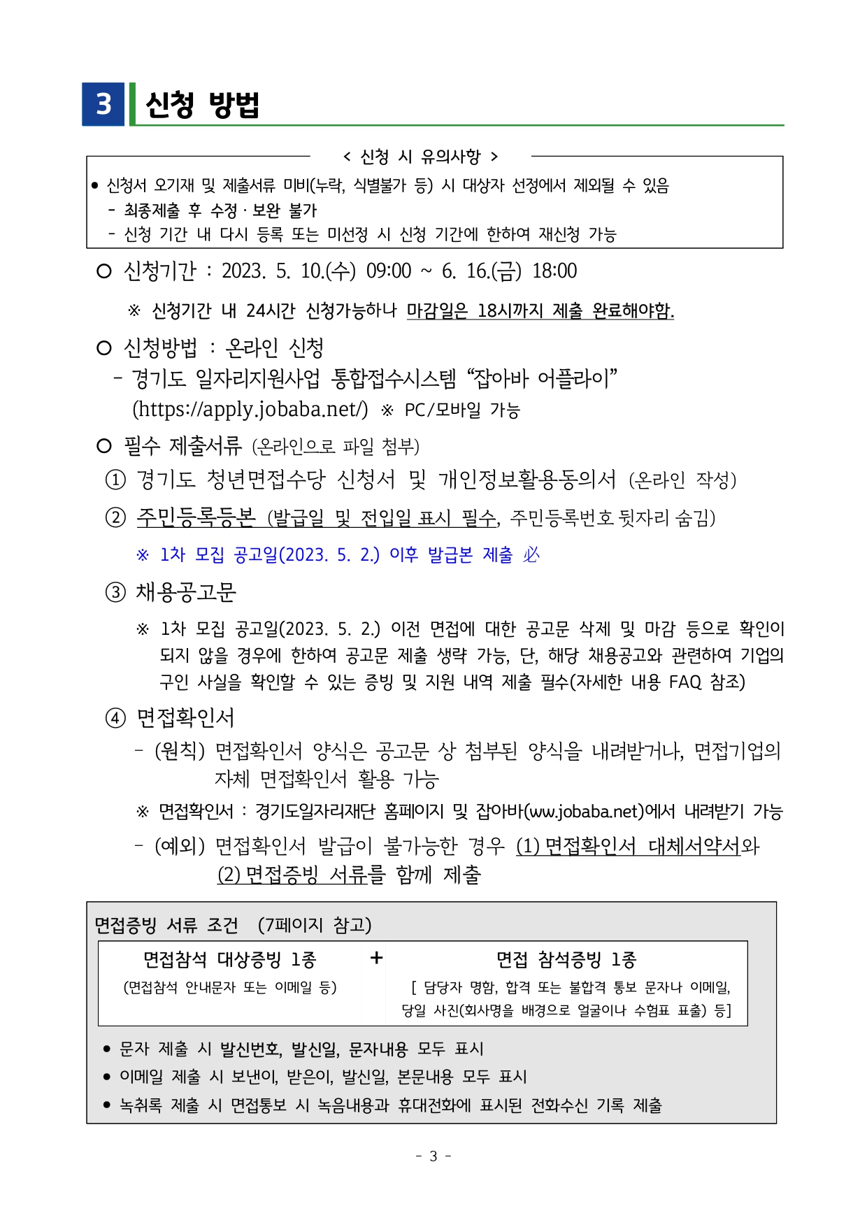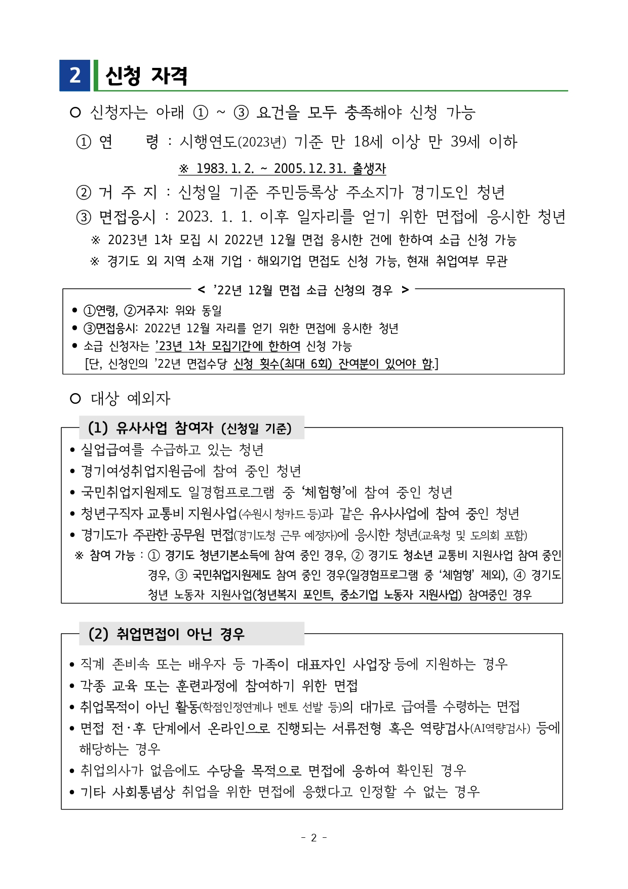 (①1983. 1. 2. ~ 2005. 12. 31. 출생자로 ②신청일 기준 주민등록상 경기도 내 거주자) ※ 일자리 주( 시간 단시간 30 미만) 에 응시한 면접도 신청 가능 :