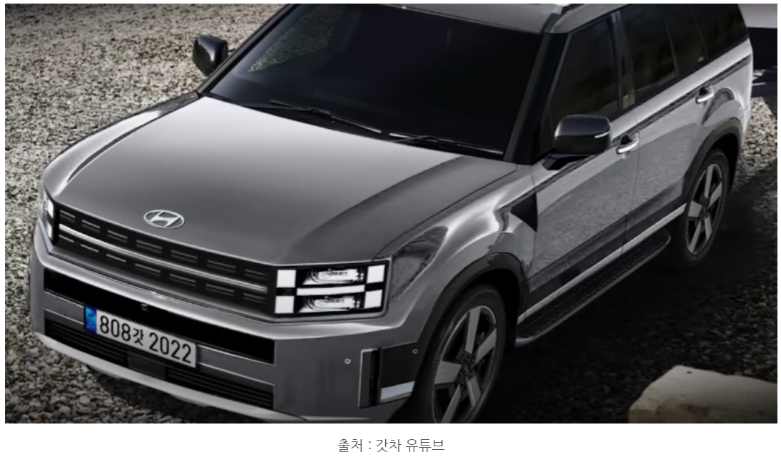전체적인 디자인으로 네모난 직사각형을 많이 사용했다는 것을 알 수 있습니다. 때문에 박시한 느낌의 신형 산타페는 각진 디자인의 SUV를 기대하셨던 분들에게 좋은 선택지가 될 듯 합니다.