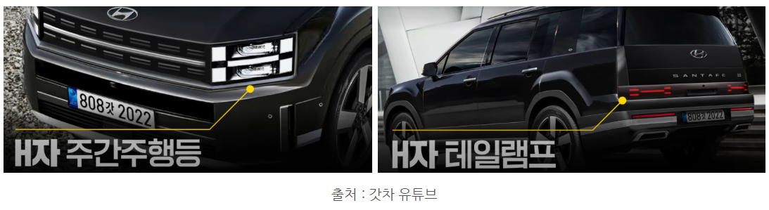 또한 주간주행등과 테일램프가 현대의 H자를 본따 변경 된 일관성 있는 앞 뒤 디자인이 또 하나의 포인트죠.
