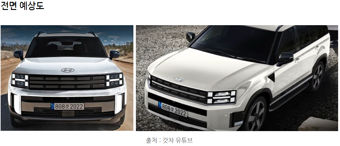 2024 산타페 신형 풀체인지 MX 5는 현대의 다른 모델 '팰리세이드' 에 비등한 크기와 그랜저 수준의 고급스러움을 갖추었지만, 커지는 넓이에 실용성도 놓치지 않은 일명 '고급감과 실용성' 모두 갖춘 모델이 될 것이라는 전망이 있습니다.